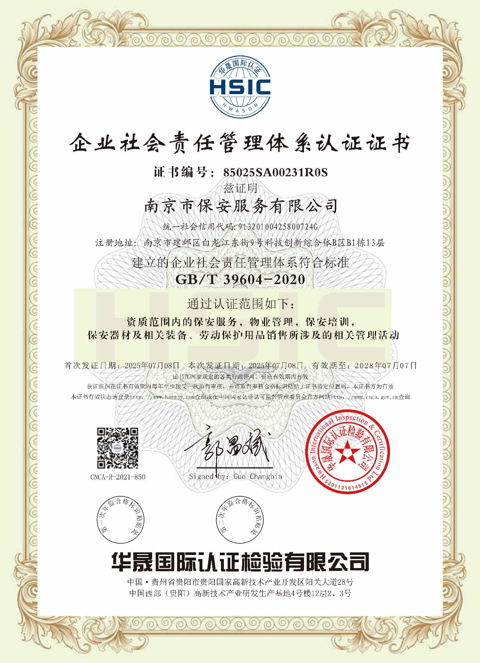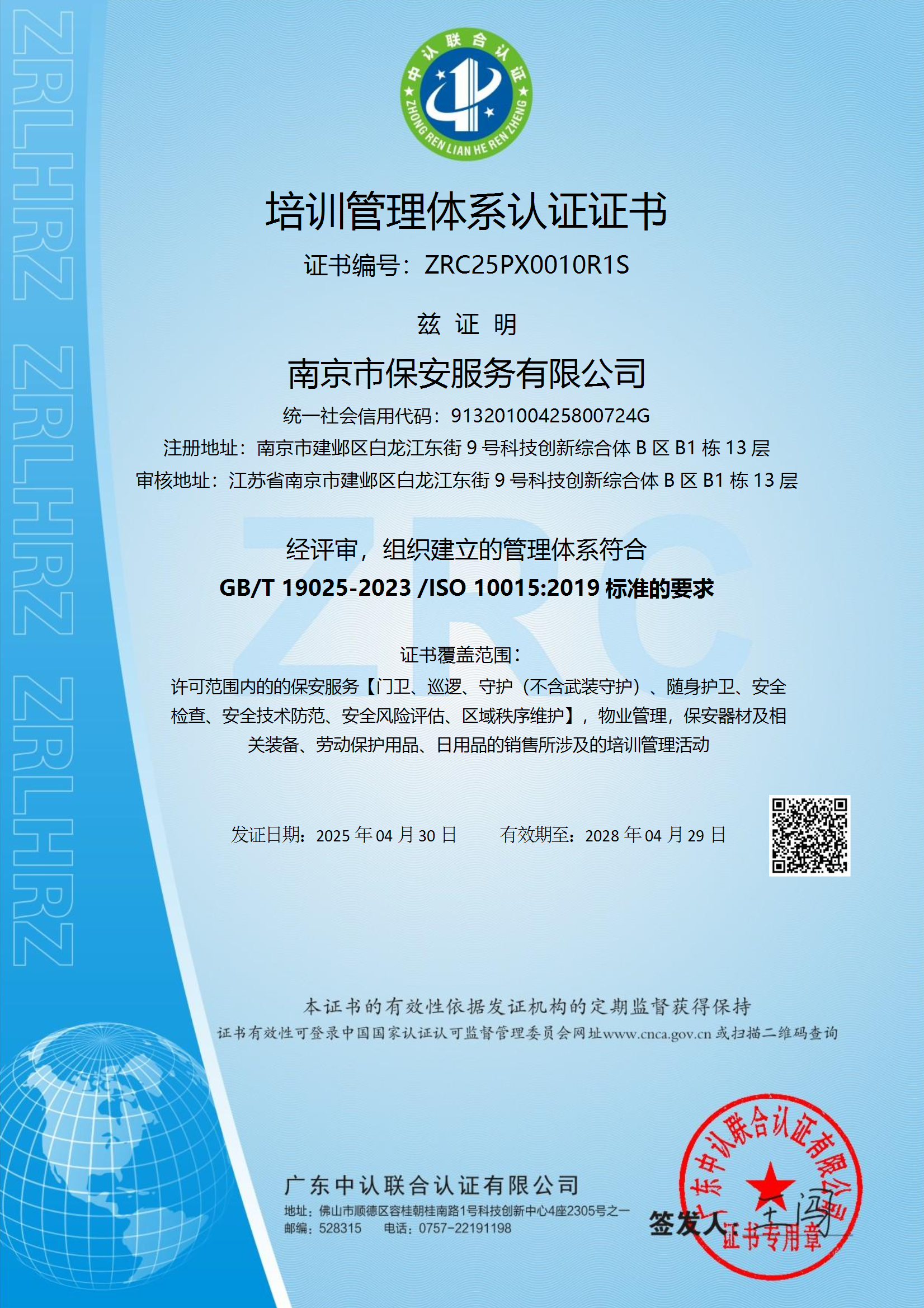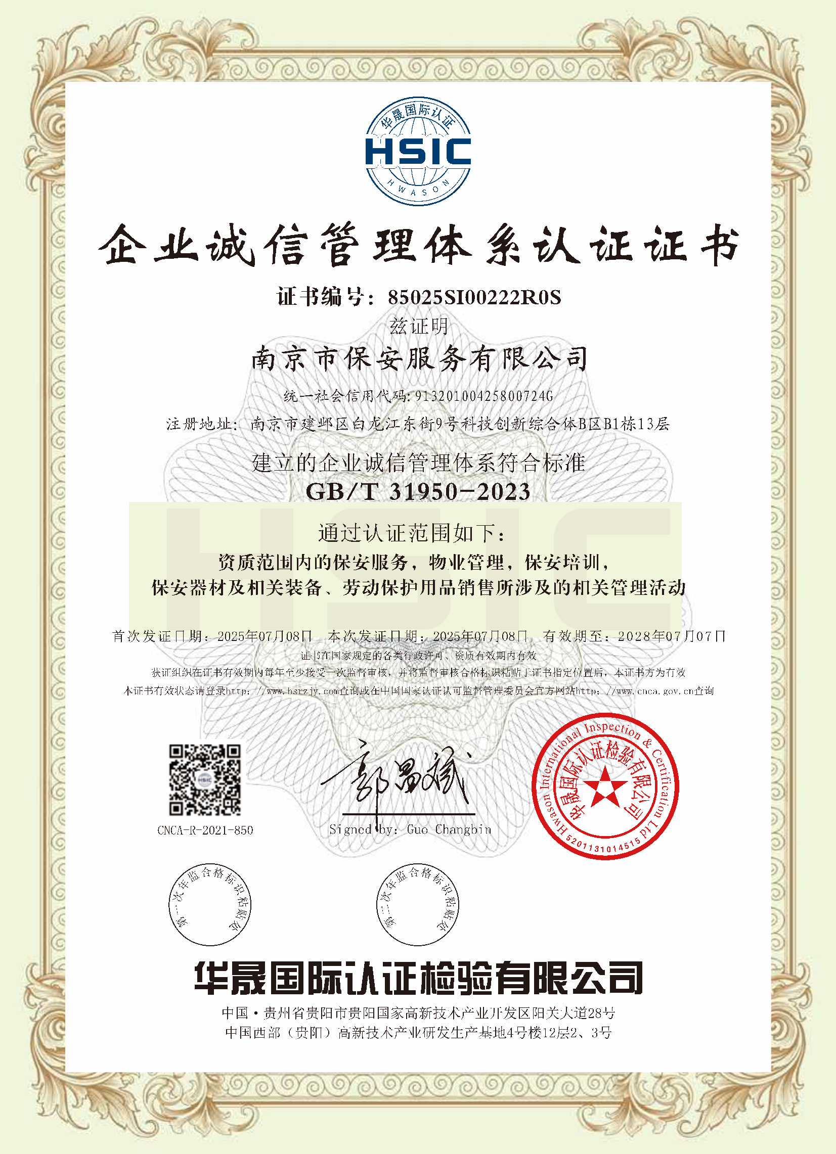 祝賀:南京市保安服務(wù)總公司通過(guò)企業(yè)誠(chéng)信管理體系認(rèn)證和企業(yè)社會(huì)責(zé)任管理體系認(rèn)證[07-16]